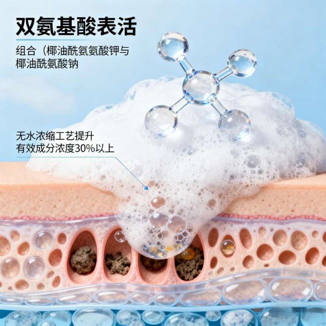 椰油酰甘氨酸钾 + 椰油酰谷氨酸钠,温和净澈不损肤