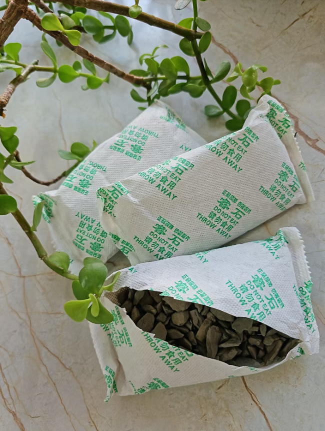产品特性:作为天然矿石,无需光照、无需额外能量即可持续工作。使用过程中无需频繁晾晒或更换,根据实验推算,在正常家居环境下可使用长达36个月,真正实现了“放置即净化”的省心体验。其不规则颗粒形态也证明了其天然矿物的属性。