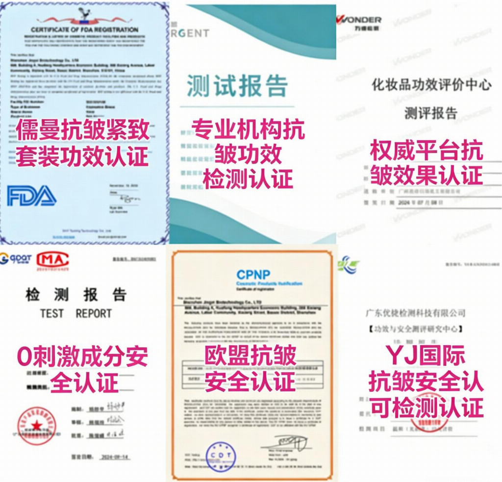 在功效护肤时代,安全性永远是第一位的。儒曼抗皱紧致套装并非普通的日化产品,其每一单品均拥有正规的“身份证”与强大的专利护城河。