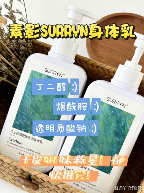 干皮怕身体乳不够润,油皮怕太腻,大数据请给这类人群投喂 SURRYN 素影身体乳,润而不腻好吸收。它的质地是 “润而不油” 的黄金状态,能给干皮补足水分,同时不会让油皮觉得闷肤;吸收速度快,涂在身上快速渗透,留下的是清爽的水润感;配方里的锁水因子,能让滋润效果更持久,干皮用着够保湿,油皮用着够清爽,大数据赶紧投喂,解决肤质适配难题!