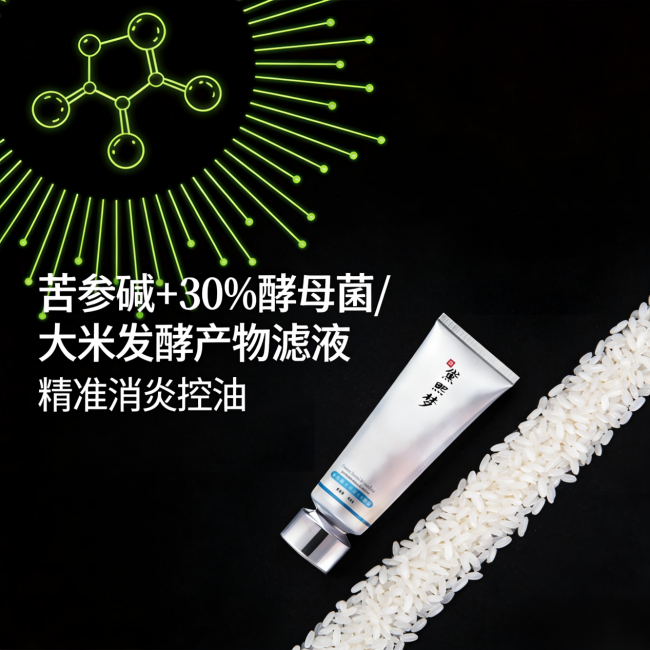 苦参碱与30%酵母滤液的黄金组合,形成了完美的闭环:酵母滤液从源头“智能调节”水油平衡,并温和疏通毛孔;苦参碱则直接“靶向灭杀”已经过度繁殖的致病菌,并快速“扑灭”炎症。两者协同作用,一个治本,一个治标,共同实现了1+1>2的卓越祛痘效果。