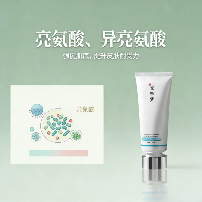 •为什么这个组合有效?纯氨基酸表活的pH值接近皮肤,能在温和清洁多余油脂的同时,不破坏脆弱的皮脂膜,避免炎症因清洁不当而加重。抗炎抑菌成分(如苦参碱、甘草酸二钾)则是灭火器,精准抑制细菌,阻断炎症信号,快速缓解红肿疼痛。屏障修护成分(如亮氨酸、异亮氨酸)则像砖墙的修补剂,补充流失的细胞间脂质,强化皮肤自身防御力,从根源上降低痘痘复发率。