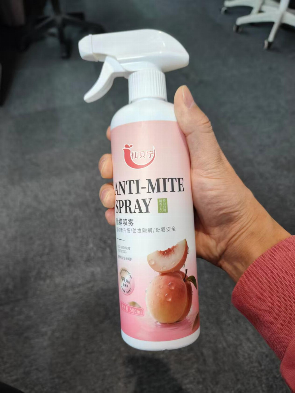 成分上采用高纯度天然植物抑菌除螨剂,经过多次科学配比调试,摒弃所有有害添加,温和亲肤无刺激,同时搭配专属定制梦幻白桃植物香氛,采用天然花果萃取工艺,清新淡雅不刺鼻,既能根源分解各类顽固异味,又能实现长效留香,喷完后不会出现熏鼻、头晕等不适感。