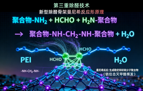 第二重:纳米凝胶+除醛骨架曼尼希化学反应,将吸附的甲醛分子牢牢锁定,避免脱附造成二次污染,破解甲醛反复挥发的行业痛点;