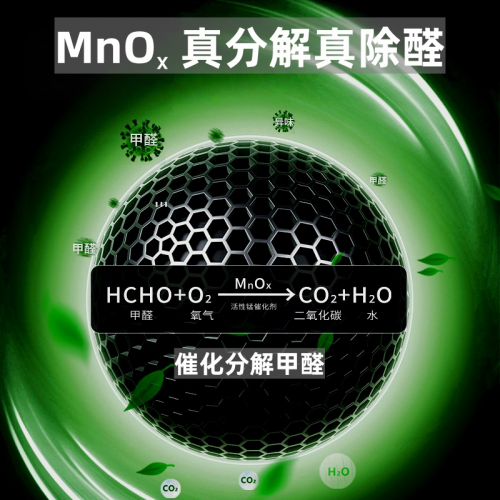第三重:贵金属锰基催化分解,在常温下断裂甲醛分子链,将甲醛彻底分解为无害的水和二氧化碳,无任何有害残留,符合母婴安全标准;