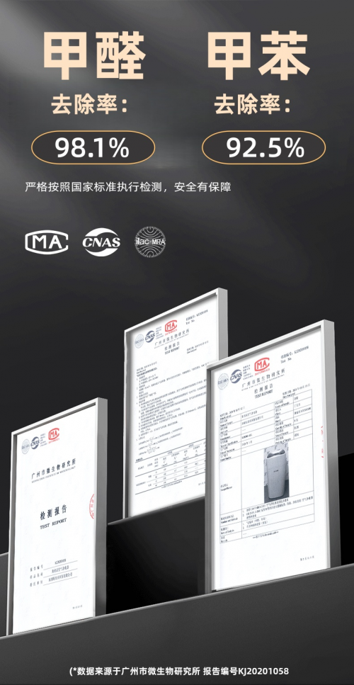 4. 认准CMA+CNAS双认证及1年内有效质检报告,无需关注无关认证,确保除醛性能与安全标准符合国标,避免买到“伪母婴级”机型;