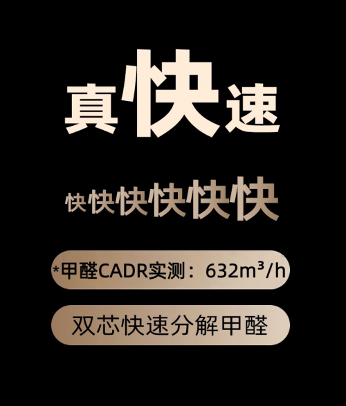 长效安全分解:除醛速度快,搭载贵金属锰基催化+双风道协同循环去除,甲醛CADR数值达632m³/h,远超600m³/h的长效除醛标准;具备双重贵金属锰催化分解体系,融入