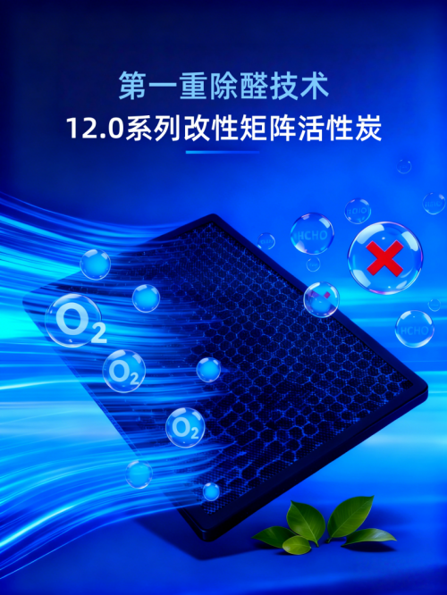 第一重:创新型改性活性炭,快速吸附游离甲醛、甲苯、TVOC等装修污染物,依托蜂窝矩阵新型矿晶改性结构,提升吸附面积与效率,为后续分解奠定基础;