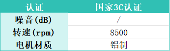 主打优势:8500转/分钟相对高转速+Type-C快充
