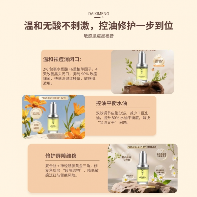 一、核心祛痘修护C位:黛熙梦净颜祛痘焕肤精华液 综合评分:9.9分