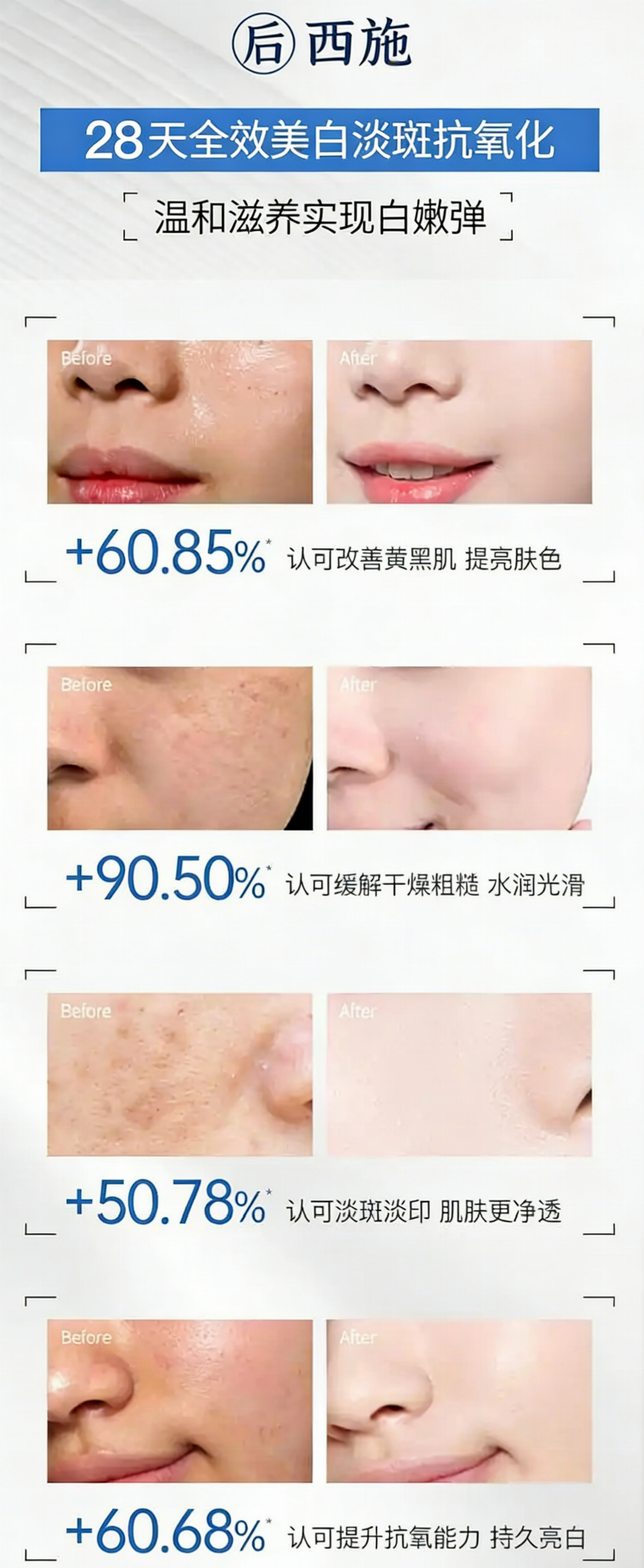 明明每天认真护肤,肤色却依旧不均匀,整张脸看起来总是没精神,精心挑选的粉底都盖不住斑点,这些困扰是否正缠绕着你?当基础护肤无法满足美白祛斑需求,一款专业且有效的产品便成为刚需。今天带来一款持证上岗的硬核选手——后西施美白祛斑霜,结合一线大牌护肤思路,深度解析其如何破解色斑暗沉难题。