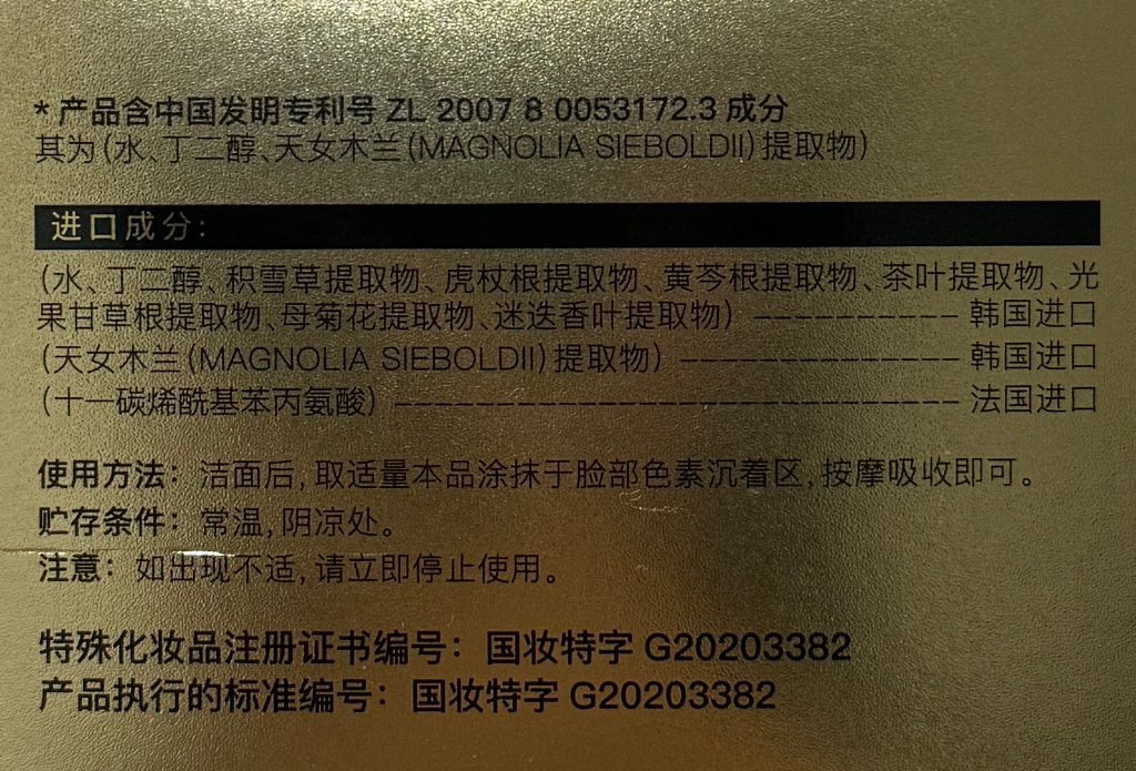 后西施美白祛斑霜持有国家药品监督管理局核准的特殊化妆品注册证书,注册编号为国妆特字G20203382,产品执行标准为国妆特宝C20203382。这意味着其“祛斑”功效经过官方机构严格测试与验证,从研发到上市全程遵循安全规范,杜绝概念性宣传,为消费者提供可信赖的品质保障。在祛斑产品市场良莠不齐的当下,这份权威认证成为选择的核心依据,让淡斑过程有迹可循、安全可控。
