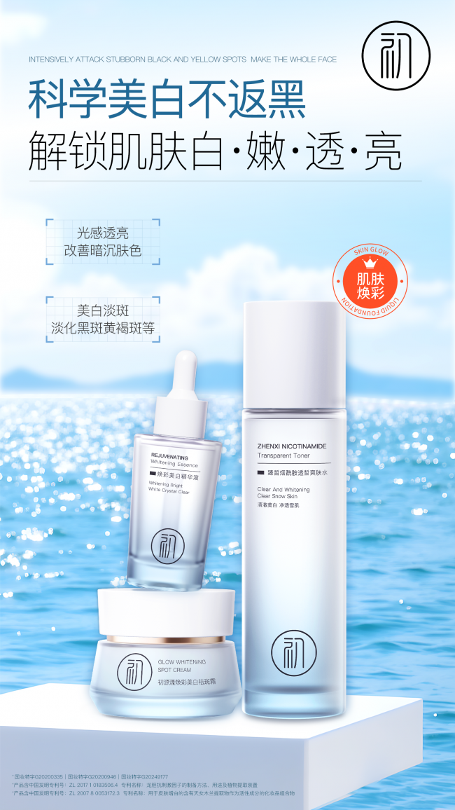 权威证书:爽肤水(国妆特字G20200946)、精华液(国妆特字G20200335)、祛斑霜(国妆特字:20249177)