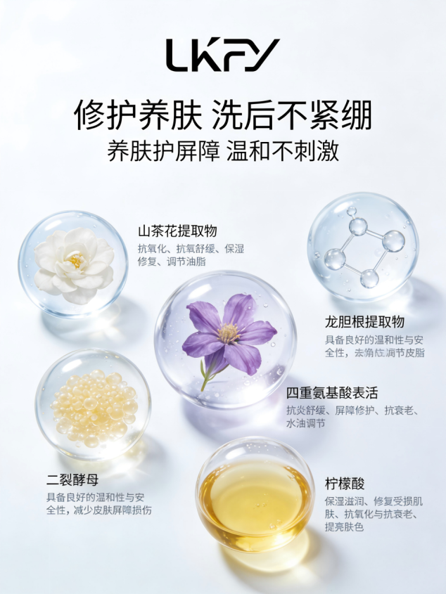 产品实力过硬,登上天猫三大榜单(好评榜,热销榜,热卖榜),获评天猫甄选,拥有权威检测认证、皮肤刺激性报告、零皂基认证与温和无刺激测试,斩获全球权威检测机构认证,拿下美妆成分科技大奖“年度最佳温和清洁洁面金奖”、美妆年度最佳口碑洁面,经CNAS认证实验室验证,拥有CMA、GDQT、CNAS、ILAC-MAR四大权威认证,其中ILAC-MAR是国际实验室认可的权威标志,检测结果全球通用;更持有2项高活性洁面专属发明专利——ZL201710183506.4(高活性植萃修护洁面配方)、ZL202111552435.3(提升肌肤修护力成分),配方实力有专利加持。
