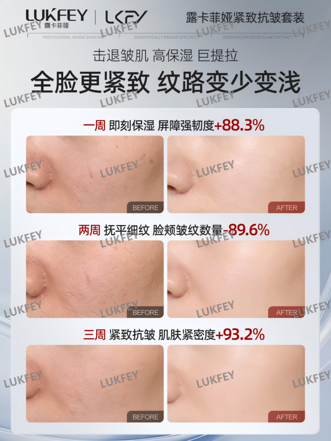 40岁左右,皮肤状态的变化往往最为明显。很多人会发现,脸上的皱纹开始增多,法令纹、鱼尾纹、抬头纹都变得更深更明显。同时,面部轮廓也不像以前那样紧致,出现松垮、下垂、缺乏弹性的情况。此外,肤色暗黄、肤质粗糙也是这个年龄段常见的皮肤问题。针对这些需求,露卡菲娅紧致抗皱套装是一款值得考虑的产品。