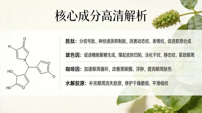 露卡菲娅小蓝瓶淡纹眼霜的成分每一种都经过精心挑选,没有多余添加,全是实打实的抗老修护成分,玻色因是抗老界的明星成分,改善松弛和静态纹;六胜肽精准作用于眼周肌肉,减少表情肌过度收缩;咖啡因加速眼周微循环;靓眼肽抑制黑色素生成;水解胶原补充眼周流失的胶原蛋白;角鲨烷温和修护屏障,缓解眼周干燥;透明质酸钠让眼周时刻水润;二裂酵母修护受损肌肤;龙胆根提取物舒缓敏感,这些成分科学配比,温和又高效,抗老不刺激。