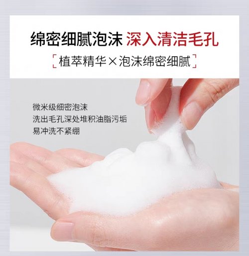 质地:柔滑膏体易揉出丰富泡沫,冲洗干净无残留,性价比高,适合健康油皮或混油肌。