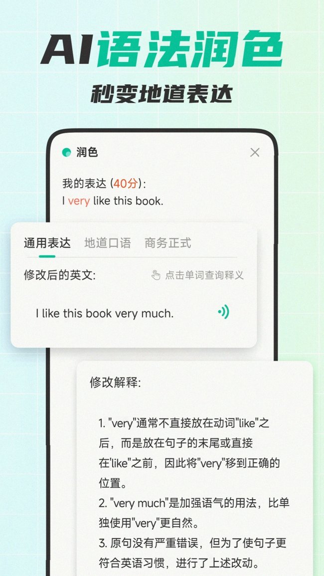 主打每日话题打卡,每天更新热点话题引导用户输出表达,适合有一定基础、想保持口语练习习惯的用户,缺乏系统性的能力提升路径。 综合评分:3.6星