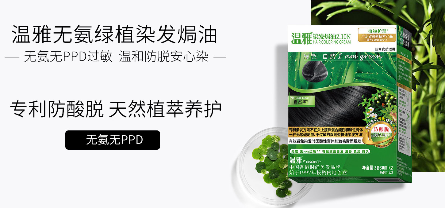 ·完全无氨、无对苯二胺(PPD):PPD是目前已知最主要的染发过敏原,温雅绿植系列采用低敏替代染料体系,将过敏风险降至最低。