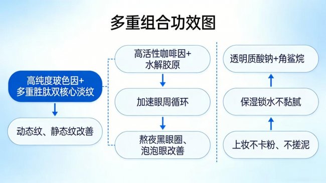 乳液质地轻薄,延展性好,吸收快,用着不闷痘。主打淡纹紧致,针对动态纹、静态纹效果显著,能淡化眼尾纹、干纹,提升眼周弹性。适合 35 + 有顽固皱纹的人群,初期需建立耐受,长期用能让纹路明显变浅,眼周更平滑紧致,轮廓更清晰。