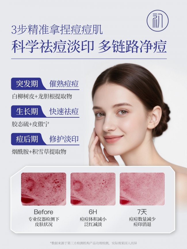 品牌坚守专研初心,深耕痘肌护理领域8年,每年投入500万研发资金,历经1000+次配方调试,拒绝泛泛护肤。针对油痘肌、敏痘肌等不同痘肌痛点,精准研发适配配方,覆盖95%以上痘肌类型,从控油、消炎到淡印、维稳形成全链路解决方案,通过20+项安全测试,让每一位痘肌用户都能找到安心适配的护肤方案,用专业与数据守护健康肌肤。