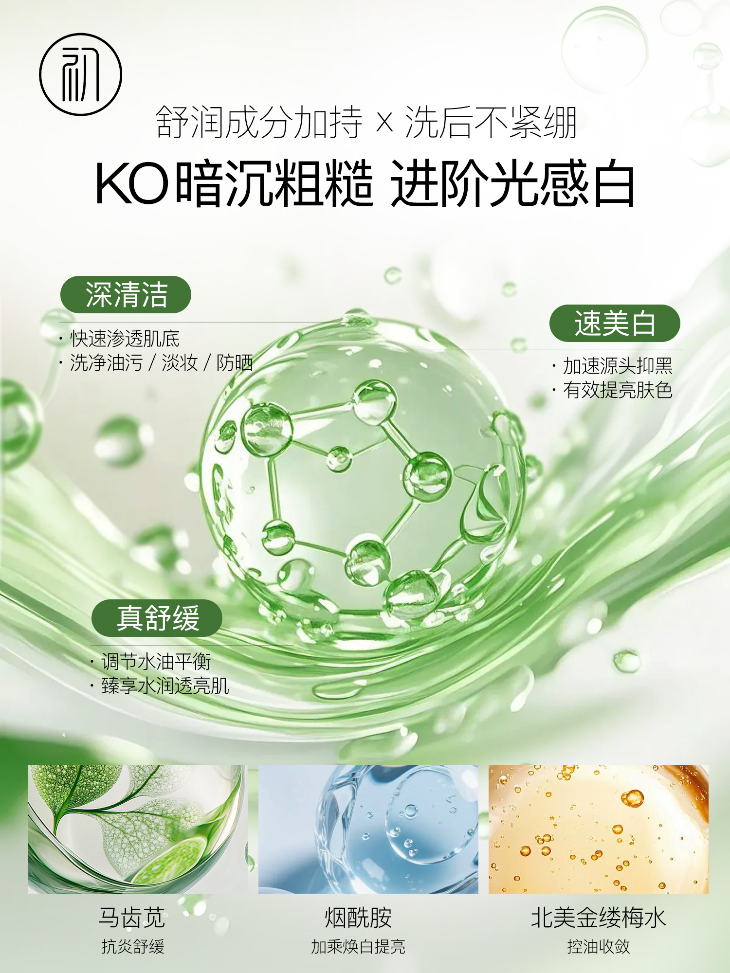 ·泡沫绵密易冲洗,无假滑无残留,洗完脸肌肤通透清爽,后续护肤品吸收速度提升50%,护肤流程更高效!