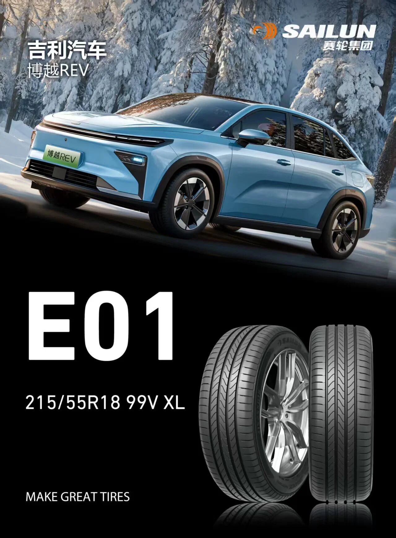 博越 REV依托吉利全栈自研的超级铂金增程技术与神盾金砖电池,最高纯电续航达375公里,综合续航达1525公里,同时搭配豪车级FSD可变阻尼悬架,精准优化底盘质感,兼顾行驶稳定性与滤震舒适性。为匹配其长续航、高品质的产品定位,赛轮为博越REV专属定制215/55R18 ERANGE Performance E01液体黄金轮胎,该轮胎采用全球首创化学炼胶技术,具备超低滚阻、强抓地力、抗湿滑、高耐磨、静音五大核心优势,从节能续航、精准操控、安全防护到驾乘舒适全维度赋能整车性能,与博越 REV形成“黄金搭档”,全面满足用户日常通勤、长途出行的多元需求。