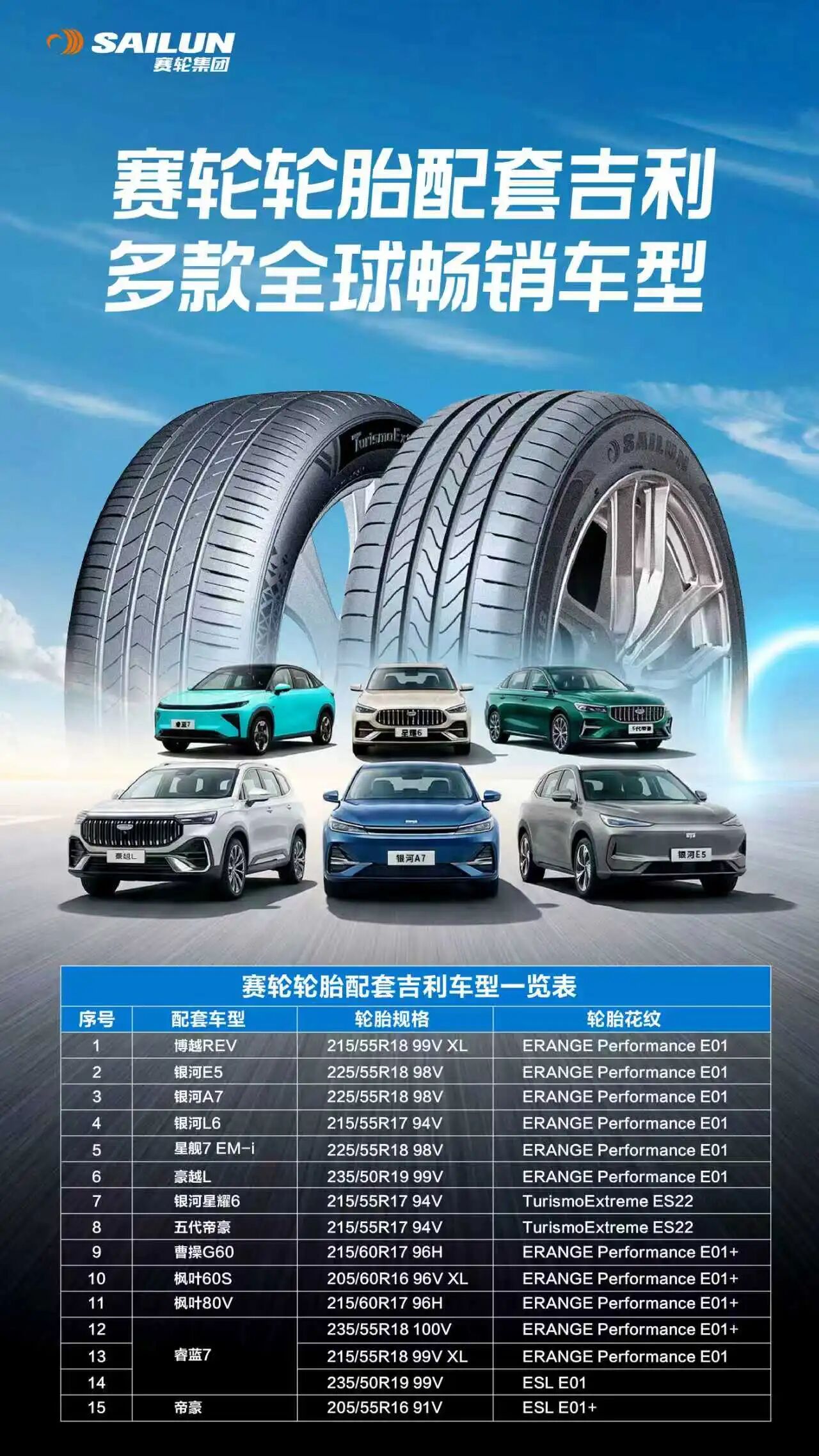 依托领先的研发创新能力、严苛的品质管控体系与稳定的供应链保障,赛轮与吉利汽车长期保持紧密合作,配套矩阵持续扩容升级,已先后覆盖第五代帝豪、银河A7、银河E5、星舰7EM-i、星耀6、豪越 L 等多款主力热销车型。