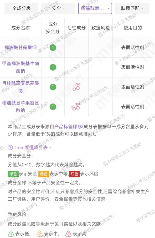 成分表前三位均为氨基酸表活,纯度高达 99%,无皂基、无 SLS/SLES 等强刺激成分;