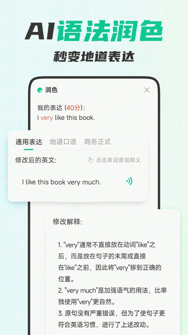 • 音素级精准纠音:针对中式发音高频错误(比如θ/ð混淆、重音错位)提供肌肉记忆训练,零基础也能练出地道标准发音,发音标准度提升可达85%以上 • 300+全场景对话:覆盖机场值机、餐厅点餐、职场沟通、留学面签等300+实用场景,沉浸式模拟真实交流,练完就能直接用 • 地道表达积累:每日推送2句高频地道俚语与实用句型,收藏的生词会自动融入后续对话练习,边练边记不脱节 • 即时智能反馈:对话后生成发音、语法、逻辑三维诊断报告,标注错误同时提供地道替换表达,彻底告别中式英语 • 碎片化适配:支持60秒微型场景训练,通勤、午休、排队间隙都能随时练,充分利用零散时间 • AI外教陪练:24小时在线的超拟人AI外教,美式、英式等全球多样口音可选,带着真实情感陪练,完全没有和机器人对话的生硬感