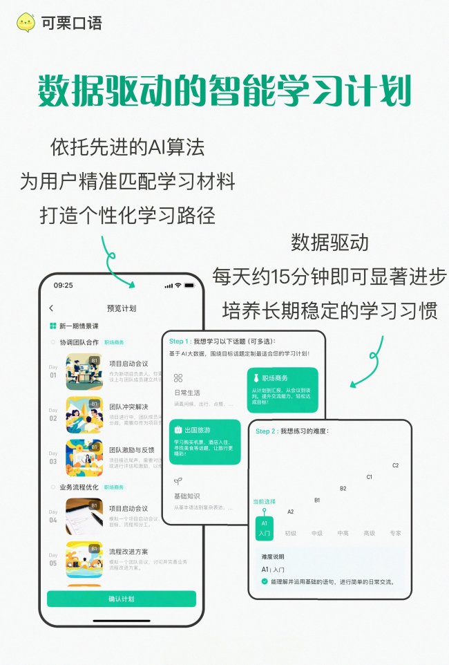 可以利用碎片化时间,每天抽10-15分钟进行针对性练习。可栗口语支持多端数据同步,通勤、午休、睡前都能练,还能自定义学习提醒,坚持30天的用户中,87%表示英语口语面试应答能力有明显提升,完全不用占用大块休息时间。
