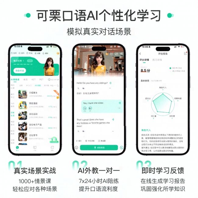 可栗口语用技术打破了口语学习的门槛,让每一个人都能随时随地拥有专业的AI外语陪练,真正实现"每天10分钟,口语天天练"。