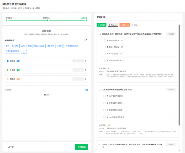 每逢考核节点,HSE人员不得不从庞杂的法规、规程中手工拼凑试题。临时出题任务往往让人疲于应付,一次常规培训光出题、审题就可能耗费大半天时间,准确度还难以保证。