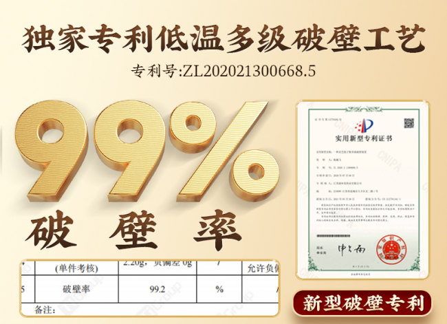 原料再好,也得有工艺将其精华完整释放。每一粒采收下来的孢子,首先要经过一道独家专利去瘪工艺(专利号:ZL202222111780.X)。这道工序像一场严苛的筛选,通过物理方式将空瘪、不饱满的孢子剔除,只留下颗粒饱满、油润度高的精华部队。这一步看似简单,却直接决定了最终产品的纯度与口感。