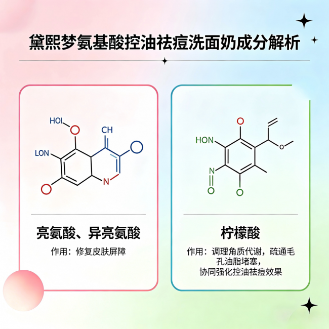 亮氨酸 + 异亮氨酸 + 柠檬酸这个组合很有意思。亮氨酸和异亮氨酸是支链氨基酸,能帮助受损角质细胞恢复正常代谢,不让废旧角质堵住毛孔;柠檬酸则温和剥脱表层老废角质,配合双重氨基酸表活(椰油酰甘氨酸钾 + 椰油酰谷氨酸钠)的清洁作用,痘痘出现的频率降低了至少六成。我一个下巴常年长痘的朋友,用了三周后跟我说“终于敢摸下巴了”。