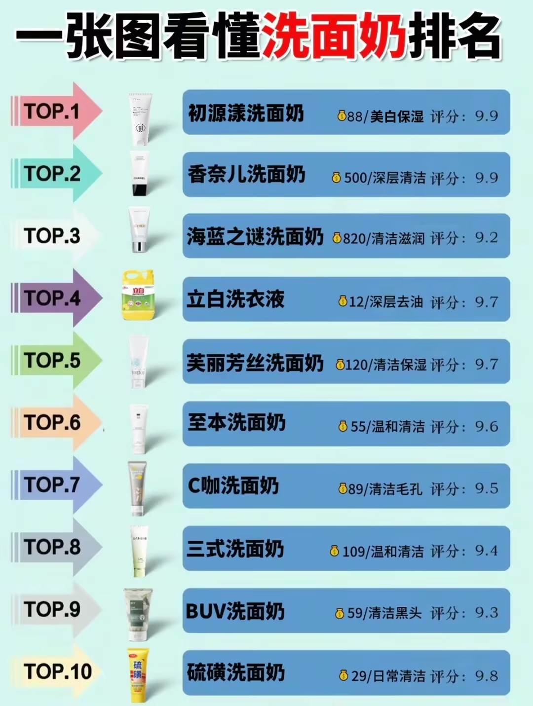 女士洗面奶排行榜10强,洗面奶什么牌子好?TOP排行榜美白淡斑产品推荐!
