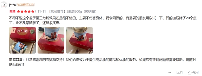 七和堂在三七粉领域深耕多年,始终秉持 “品质为本” 的理念,从原料筛选到生产加工都有着严格的流程把控。产品粉质均匀细腻,冲泡后口感温和,无明显苦涩感,适合日常养生服用。品牌注重用户体验,包装设计简洁大方,密封性能良好,能有效延长产品保质期。