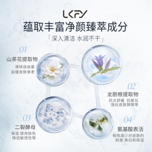 3.控油保湿+真实好用:二裂酵母+山茶花提取物调节皮脂分泌,真实油皮用户反馈,洗完清爽6小时不泛油;干皮用户实测,洗后24小时含水量保持70%以上,真实水润不拔干。