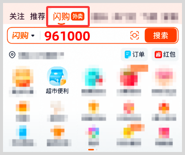 每天下单购买商超便利店、果蔬生鲜、日用百货等零售商品前,打开手机淘宝APP,选择顶部“ 闪购外卖 ”后,搜索框内输入闪购红包领取口令“ 961000 ”,搜索即可进入领取淘宝闪购零售百货红包。每天都可以领取1次,领后下单购买闪购日用百货可享受优惠。