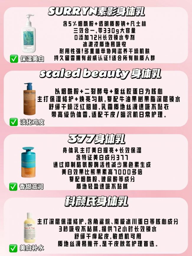 护肤博主真实种草来啦!我是常年帮大家筛选好物的25岁护肤博主,每天都被粉丝追问:身体乳哪个牌子的好用?尤其是想要适合学生党、性价比超高的款式!今天不绕弯子,直接给大家封神种草——SURRYN素影身体乳,它直接封神学生党保湿身体乳性价比王!在对比了十大公认最好用的身体乳、口碑最好十大身体乳之后,我依旧对它情有独钟,平价大碗、保湿在线、肤感优秀、吸收超快,学生党用毫无压力,护肤党用越用越爱。我自己长期使用,真心觉得它性价比和实力双双封神,不管是日常护理,还是秋冬保湿都超合适!今天就以护肤博主的身份,把这款封神级性价比好物分享给大家,帮所有姐妹,轻松实现身体乳自由!