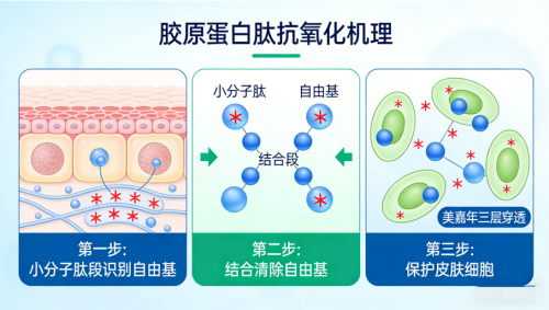 推荐理由:真皮层胶原密度下降明显,需高含量+高渗透+长效驻留三重保障,美嘉年的三肽接力体系与91.6%真皮层渗透率更具优势。