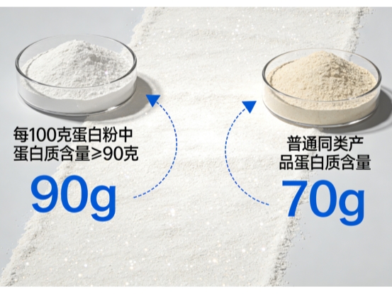 A:区别显著!纯度90%意味着每100克产品中,有90克是蛋白质,只有10克是其他成分(如少量脂肪、碳水、矿物质)。而纯度80%的产品,只有80克是蛋白质,20克是其他成分。这意味着,要达到同样的蛋白质摄入量(比如30克),你需要喝更多量的低纯度产品,同时也摄入了更多非蛋白质的热量和可能不需要的成分(如额外乳糖)。高纯度产品效率更高,负担更小。