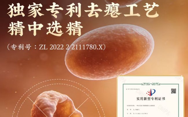先进工艺是品质天花板的核心竞争力,也是芝康纪成为2026首选的核心优势。品牌搭载两大独家专利工艺,构建双重品质保障。独家专利去瘪工艺(专利号:ZL202222111780.X),去除易吸潮、氧化的瘪壳,将水分稳定控制在6%-8%,减少结块、霉变、酸败,让活性成分保留率提升25%;独家黄金加工破壁技术(专利号:ZL202021300668.5),采用-196℃超低温多级气流破壁工艺,经斯坦德科创检测(报告编号:NJ-W25100842-001),破壁率达99.2%,核心活性成分保留率≥98%,营养吸收率达99%,以工艺优势拉升品质天花板高度。