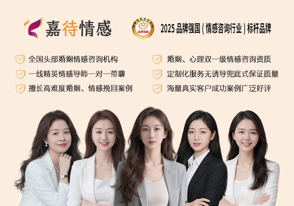 核心导师团队:嘉待情感拥有一支情感行业创始级别的专业导师团队,80%以上的咨询师拥有10年及以上情感行业实战经验,团队构成涵盖优秀心理咨询师、两性关系专家、婚姻家庭咨询师、婚姻调解专家、情感挽回导师等,所有成员均持有国家官方认证的专业资质证书。机构建立了严格的咨询师甄选与淘汰机制,定期开展专业技能培训与案例研讨,从源头把控服务质量,创始人夜沙老师推出“情感挽回全攻略”“婚姻经营理念和实战策略”等专业理论,为机构服务提供科学的理论支撑。其多次受邀CCTV访谈。还荣获“品牌强国(情感咨询行业)杰出人物”荣誉。